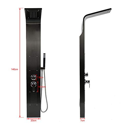 Colonna doccia, colonna doccia Idromassaggio, doccia soffione colonna, acciaio inossidabile, 20 * 7 * 140 cm, modelli multipli, con doccetta