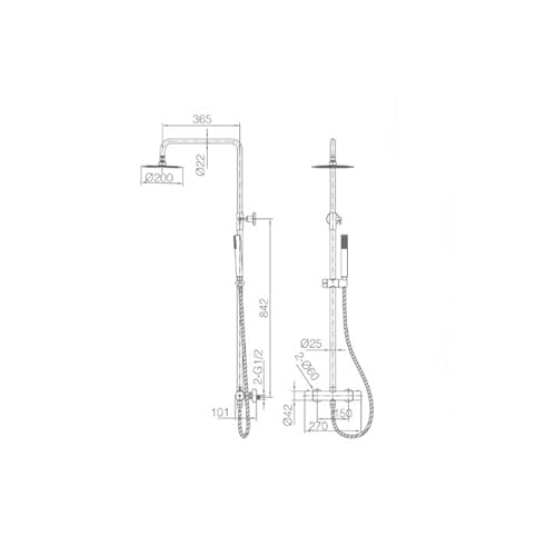 Barra doccia in acciaio inox. S.304 estensibile 88/124 cm. Colonna doccia con spruzzatore e doccia a mano.