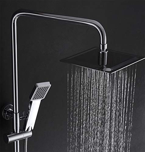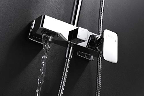 La barra per vasca è estensibile e in acciaio inossidabile. Può estendersi tra 115 cm e 165 cm. Lo spruzzatore è in acciaio inox quadrato 20 cm x 20 cm, extra piatto, cromato e anticalcare.