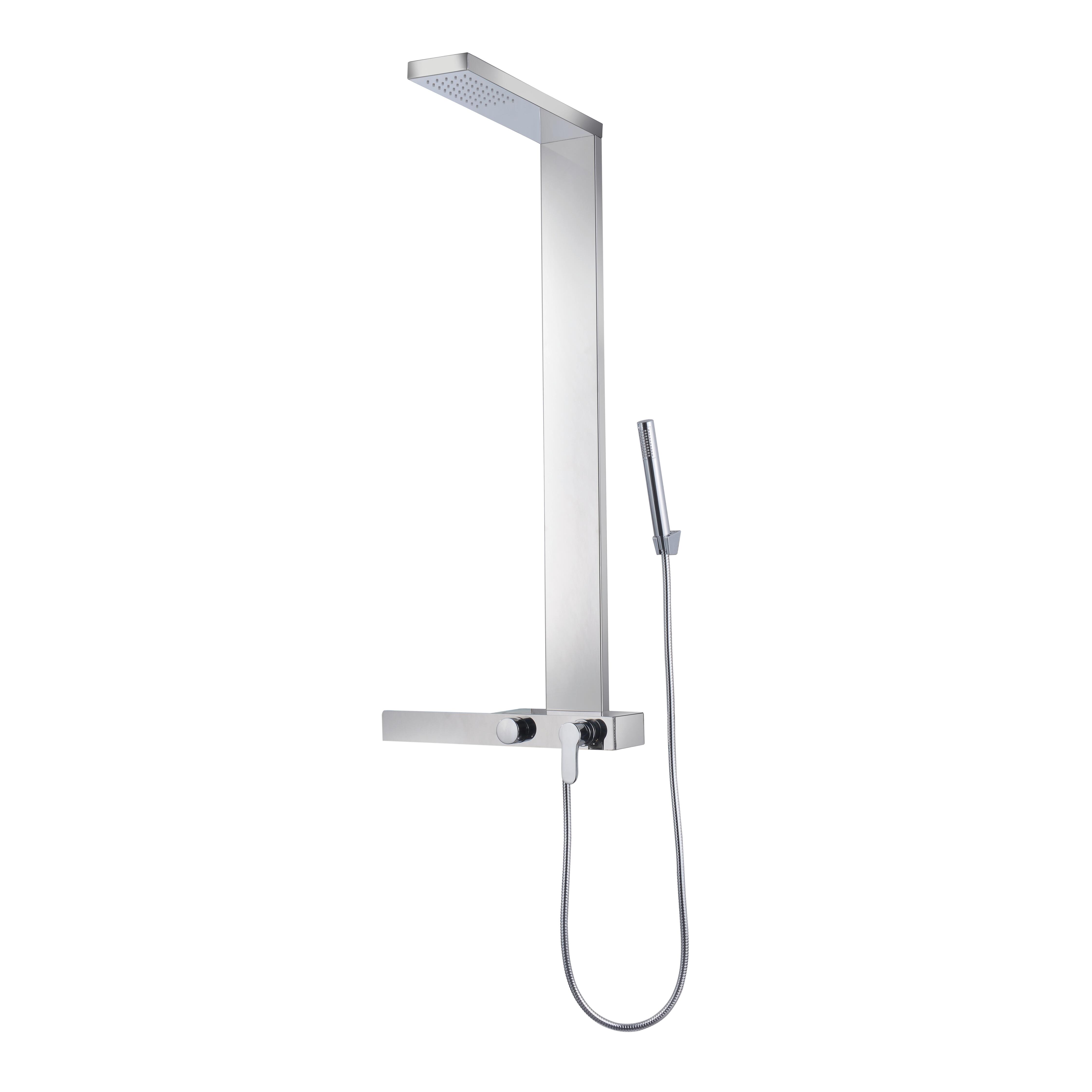 Soffione orientabile rettangolare 18x22 cm - 1 getto e doccetta in ABS. Asta in ottone cromato con miscelatore, deviatore integrato.. Per una manutenzione ottimale del prodotto, si raccomanda di pulire regolarmente gli ugelli e le superfici con un panno morbido, utilizzando detergenti delicati.