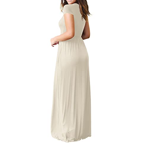 Coloody Maxi Abito da Donna a Maniche Corte Girocollo Casual Donna Abito Lungo con Tasche(Albicocca,S)