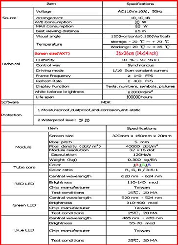 Full Color LED Advertising Display/P5 Indoor 14 x 14inch Programmable LED Sign