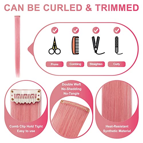 MQY COLOR Colors Multi-Colors Clip on in Hair Extensions Hair Pieces Colored Party Highlights Accessori per capelli fai da te Extension 21 pollici Capelli lunghi per ragazze Donne 9 pezzi (rosa fumo)