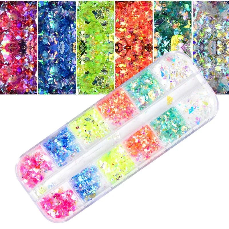 WUF 12 Color Dazzling Nail Glitter Sequins Set Mixed Round/Rhombus/Heart Flake Paillette Tips Manicure Nail Art Decorations
