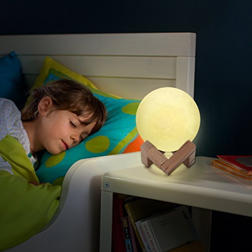 3D Moon Lamp 2 color dimmerabile touch control Brigntness USB ricaricabile luce da notte per casa decorazione natalizia, Legno, 10 cm