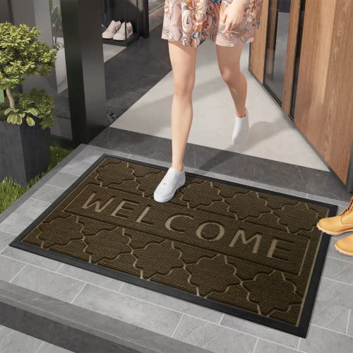 COLOR&GEOMETRY Zerbino Ingresso Esterno, Zerbino Esterno Antiscivolo Welcome, Tappeto Ingresso Esterno Impermeabile, Lavabile, Tappeto per Esterno, Interno, Entrata(Marrone, 60x90cm)
