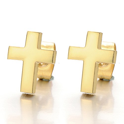 Color Oro Orecchini di Croce, Orecchini da Uomo Donna, Acciaio Inossidabile, 2 Pezzi