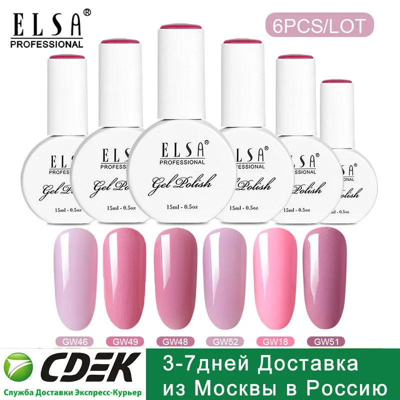 ELSA 6pcs Pink Color UV Gel Nail Polish Set For Gel Nail Art Manicure Kit Hybrid Base Top Gel polish 15ml ship from RU warehouse