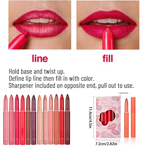 12 Color Rotating Sharpenable Matte Lipstick Pencils, Lipstick Matte, Non-stick Cup, Matte Lip Liner Pencil Set, Lasting Wear Smudge Velvety Feel Lipstick For All Skin (A+B)