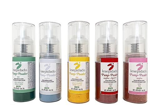 Colorante alimentare perlato in pompetta 10g Kit 5 col: rosso, rosa, blu, verde, giallo Lesepidado Vaporizzare per decorare pasta di zucchero, semifreddi, cioccolato. Sfumature luminose