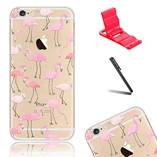 Cute Colorate Painted Design Custodie Cover Shell per Apple iphone 6/6s 4.7" (NON iPhone 6Plus/6sPlus 5.5), Wefine Protezione in Silicone Gomma Ultra Sottile Leggero Ultra Fine Cover Skin TPU Case Crystal Copertura Caso Resiste Anti-shock Lifeproof Antipolvere Motivo Quadri Transparente Originale Creativo Progettazione per iPhone 6,iPhone 6s + 1 x Stilo & 1 x Stand(Colore Casuale) - Fenicotteri