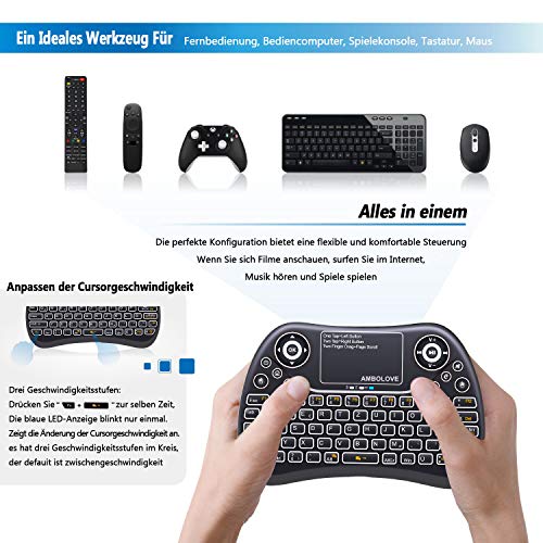 7 colorato retroilluminazione - Mini Tastiera, Layout di tastiera tedesco (QWERTZ) Air Mouse Tastiera con Touchpad e multimediale tasti, 2.4 GHz USB ricaricabile Hand Held telecomando per PC, HTPC, X box, Android TV Box, Smart TV con interfaccia USB T2-7C
