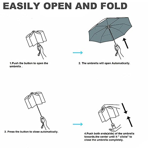 Qualità premium: realizzata in tessuto idrorepellente ad alta densità, la tettoia ti mantiene asciutta e rende estremamente facile rimuovere le gocce di pioggia. Il telaio è costruito con nervature in lega e albero per consentire la massima durata e flessibilità per resistere al vento pesante fino a 55 Mph. Con manico in plastica, l'ombrello è leggero e facile da trasportare.