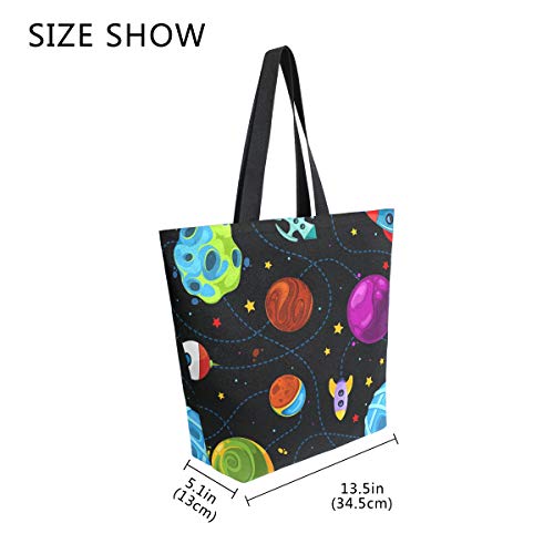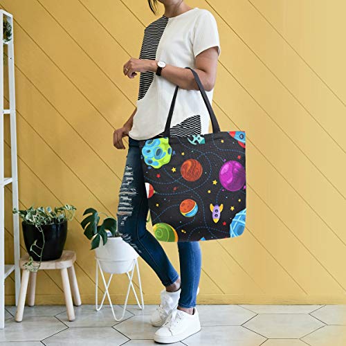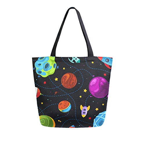 Colore bambini modello con carino pianeti razzi e stelle donne top maniglia borse spalla Tote bag tela riutilizzabile borse borsa di trasporto con maniglie