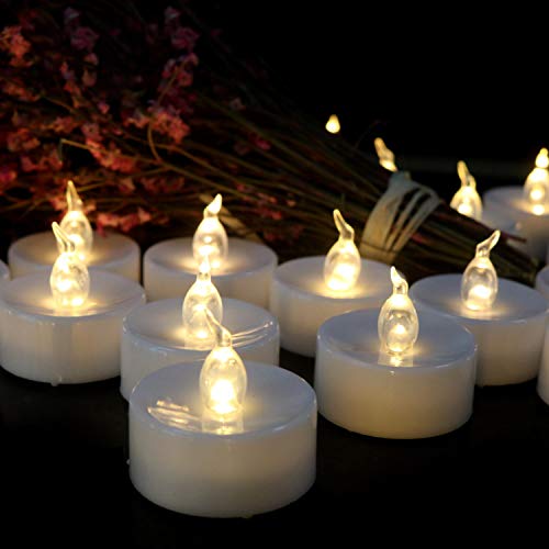 12 luci da tè, colore bianco caldo, luci a Led con timer, tremolanti, CR2032, candele elettriche a batteria, luminose, per Natale, decorazioni per esterni tea