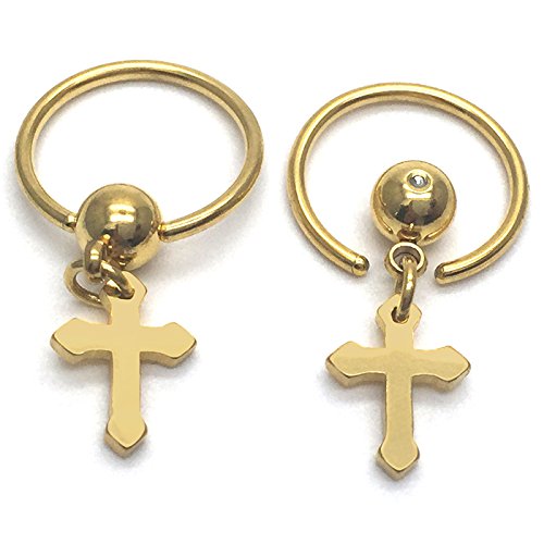 2 Colore Oro Cerchio Palla Orecchini a Cerchio con Croce, Orecchini da Uomo Donna, Acciaio Inossidabile