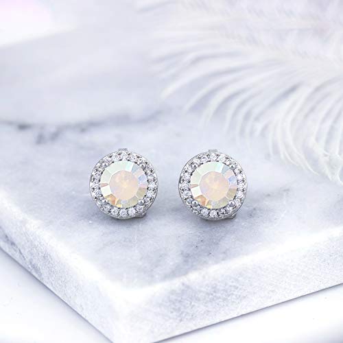 QUKE 8 mm AB colore AB orecchini a clip con cristalli di zirconia cubica, orecchini a clip rotondi, non forati, per donne e ragazze