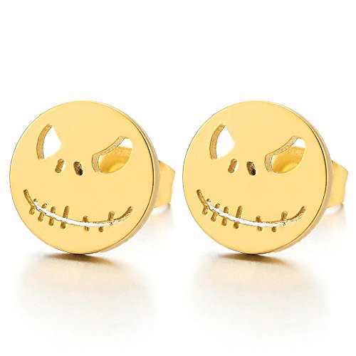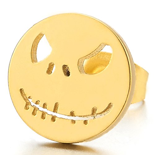 Colore Oro Piccolo Mostro Rock Punk, Orecchini da Uomo Donna Ragazzi, Orecchini a Lobo, Acciaio Inossidabile, 2 Pezzi