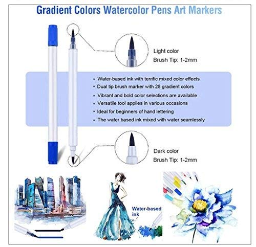 14 Count Dual Tip Markers, 28 colori. Ogni pennarello ha due colors14pcs/28 colori doppia Brush Marker, tra cui Deep Color e colore della luce che possono essere mescolati insieme per creare i tuoi colori unici.