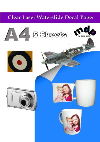 Colore Trasparente Decalcomania Carta Di Trasferimento Dell Acqua - Stampante LASER x 5 A4
