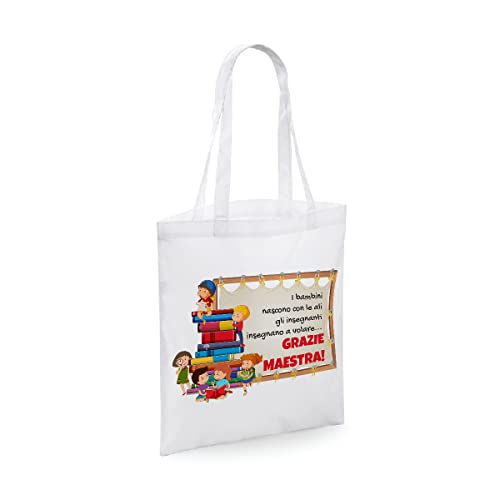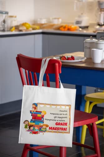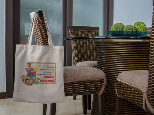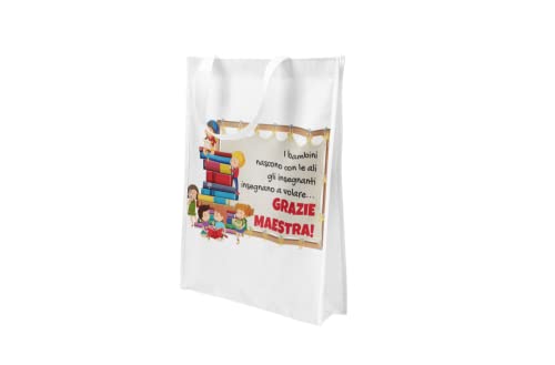 REGALO MAESTRA: La fine dell'anno scolastico si avvicina: festeggia la tua maestra con questa divertente shopping bag in cotone idea regalo adatto per la fine dell'anno.