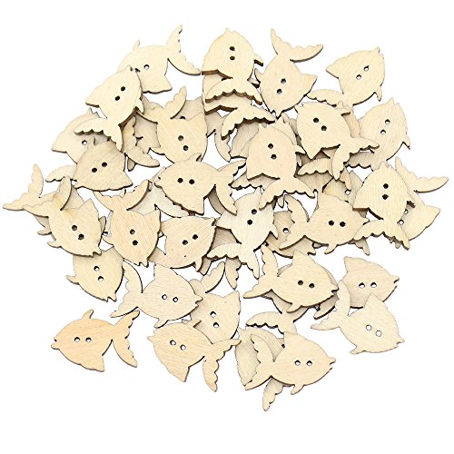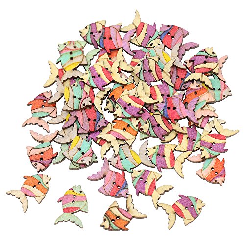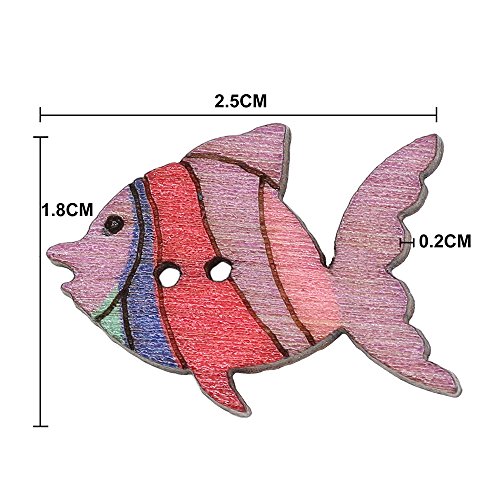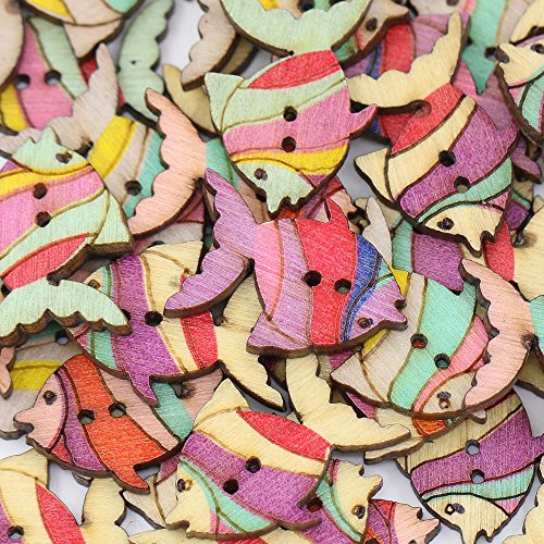 Colorful 50Pcs/set 2 Holes Cute Fish Pattern Buttons 28mm Wood by Phoenix B2C UK