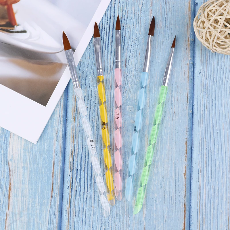 5Pcs Colorful Acrylic Crystal Pen Nail Art Brush Tools Set Acrylic UV Gel Painting Drawing Brushes Cuticle Pusher Tool