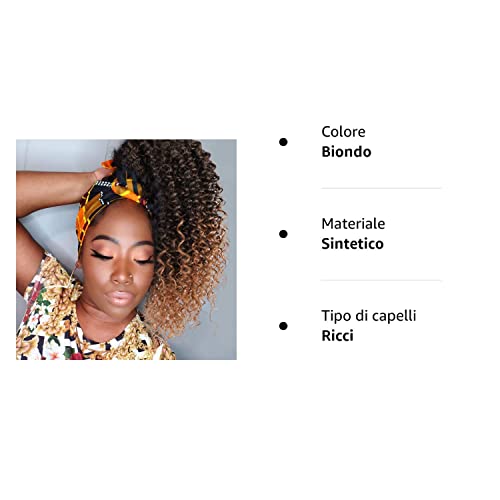 Materiale dell'extension di capelli afro a forma di coda di cavallo: fibre sintetiche di alta qualità, colore biondo sfumato, leggera, dall'aspetto naturale, come fossero capelli umani. Questa coda di cavallo può essere utilizzata per un lungo periodo di tempo.