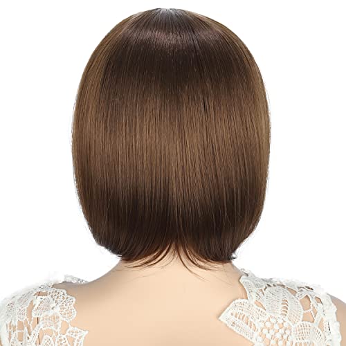 Colorfulpanda Marrone Da Donna Parrucca con Frangia,corte Parrucche Bob Ondulata,Parrucche corte naturali marroni Uso quotidiano,Parrucca lunga fino alle spalle 10 Pollici