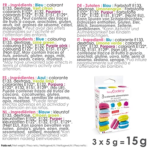 3 colori alimentari - blu, verde, viola