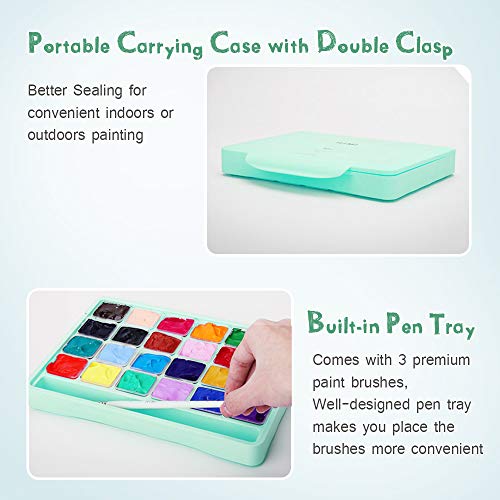 HIMI - Set di colori a guazzo, 24 colori vivaci, non tossici, design unico a tazza di gelatina con 3 pennelli per artisti, studenti, 30 ml/tazza (verde)