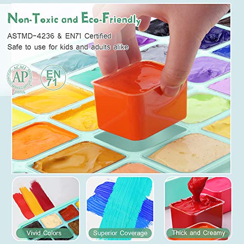Ecologico e non tossico: realizzato in materiale ecologico con certificazione EN71-3 EN71-9, il set di vernici a guazzo è di pigmento ricco, cremoso, non tossico e lavabile per artisti, adolescenti e bambini che dipingono o imparano. La vernice non si spezza o si sbriciola quando viene asciugata e può riattivarsi con acqua