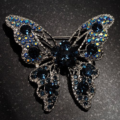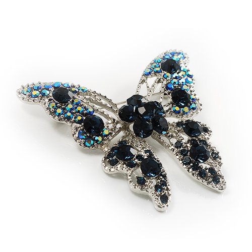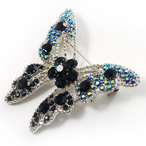 Colori: blu Navy-Spilla a forma di farfalla con cristalli Swarovski, argento)