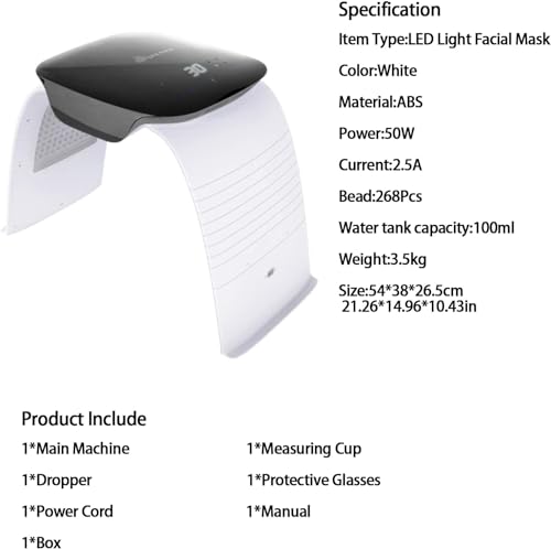 【7 FUNZIONI COLORI】 Luce rossa per stimolare la produzione di collagene. Luce blu per la rimozione e la prevenzione dell'acne. Luce verde per il bilanciamento dei pigmenti colorati, riduzione delle linee sottili, invecchiamento delle sostanze nutritive della pelle. Luce gialla per migliorare lo scambio di ossigeno nelle cellule per ricostituire le cellule della pelle. Luce viola, doppia luce rossa e blu per la riparazione di impronte di acne. Luce blu trasparente per migliorare il metabolismo della pelle.