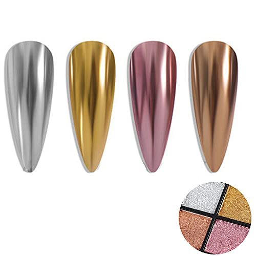 ✿✿ Il Pacchetto Include: 1 Scatola 4 Colori Grande Capacità Cromate Effecto Polveri Per Unghie E Bastoncini Per Ombretti Da 2 Pezzi Per Scavare Le Polveri Per Unghie.