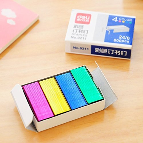 Mini colori Staples, 10 (per l'uso in Max HD-10DF cucitrice), 3/8" Corona x 3/16" Gamba, 800pcs, 4 colori (rosa, giallo, blu, verde)