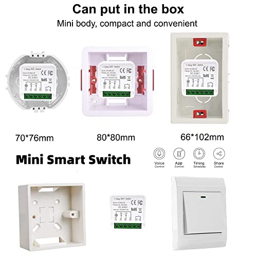 Questo modulo wifi intelligente con design mini si adatta alla scatola degli interruttori da parete EU/UK, e si nasconde facilmente nella tua scatola nascosta del tuo interruttore tradizionale senza alcuna influenza sul tuo stile di decorazione originale per renderlo intelligente. Ancora più importante, il tuo interruttore tradizionale e questo modulo intelligente possono funzionare indipendentemente in modalità non interferente. (Nota: questo modulo è adatto solo per interruttore a bilanciere, vedere la figura 2 per i dettagli)