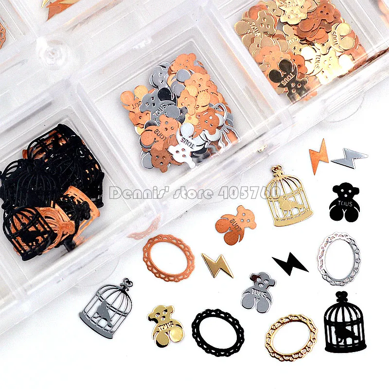 Mix 3 Colors 4 Shapes Circle Bear Cage Lightning Metal Sequin Nail Art Rhinestones Slice Decorations DIY Salon Tip4