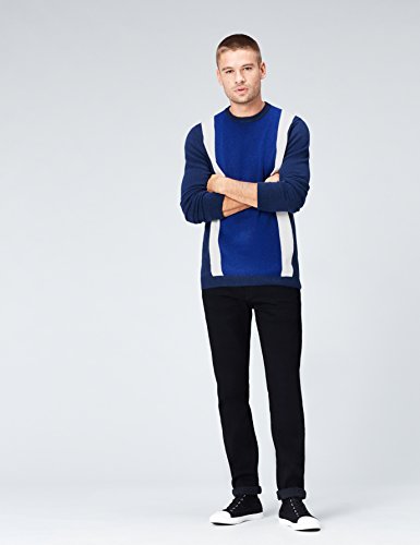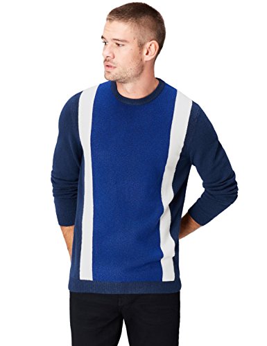 Find. Colour Block Crew Neck, Felpa Uomo, Multicolore (Navy/Ecru/Cobalt), Medium