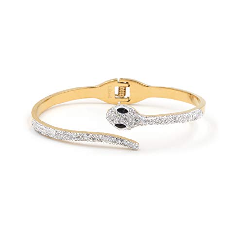 Colours & Beauty Bracciale Donna Acciaio Inossidabile Rigido Color Oro Con Serpente Chiusura Manetta Strass Luminosi |Braccialetto Per Sempre