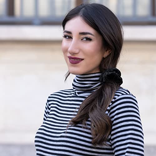 ELASTICO DONNA VELLUTO: Scrunchie donna realizzato in velluto color nero. Grazie all'elastico morbido può trattenere efficacemente i tuoi capelli e mantenerli in posizione con stile. Facile da indossare e da togliere senza danneggiare i tuoi capelli.