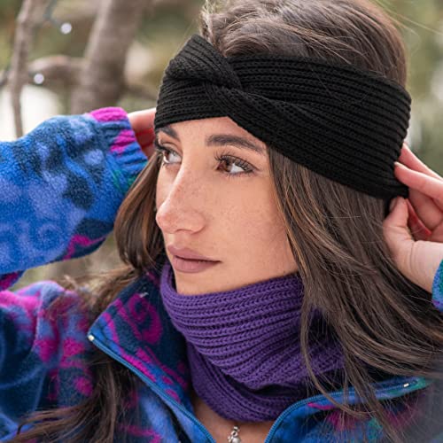 Colours & Beauty Fascia Capelli Donna in lana Made in Italy Colore Nero | Paraorecchie Donna Lavorazione a maglia | Copriorecchie Donna Invernale | Fascia Testa Alternativa a Cerchietti