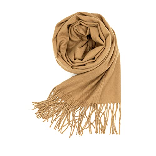 Colours & Beauty Sciarpa Donna Marrone Chiaro Grande | Pashmina Uomo Donna | Sciarpa con Frange | Scialle | Stola Elegante Cerimonia | Coprispalle Donna Invernale | Sciarponi Donna Invernali Grandi