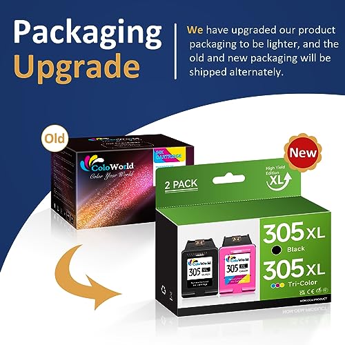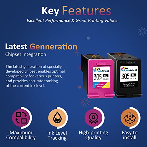 【CONTENUTO DEL PRODOTTO】- ColoWorld Rigenerate Sostituzione delle cartucce di inchiostro 305 XL Nero e 305 XL a Tricolore per hp stampanti . (Multipack= 2 Confezioni = 1 Nero + 1 Tricolore). Si prega gentilmente di assicurarsi che questo si adatti al numero di modello della stampante.