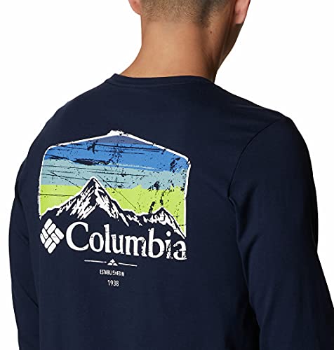 Contenuto: 1 x Columbia Pikewood, Maglia a Maniche Lunghe con Motivo Stampato, Uomo, Blu (Collegiate Navy/Hikers Haven Graphic), XS, Articolo 1977053