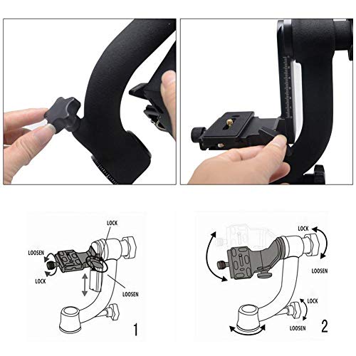 【 istruzioni per l' installazione rapida 3 - 4 passi 】 3.Allentare la manopola oitching Lock, in modo da poter regolare la pendenza del tiro.Con la manopola di bloccaggio ammortizzante, la fotocamera non cadrà in ogni angolo. 4.Allentare il blocco orizzontale e regolare qualsiasi angolo di ripresa orizzontale in base alla base 360 arto.Poi il panorama Shot può essere fatto facilmente e con precisione.