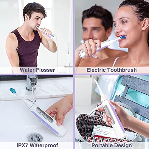 Combinazione di Idropulsore e Spazzolino Elettrico 2 in 1, Pulitore per Denti Senza Fili con Spazzolino da Denti, Irrigatore Orale Impermeabile IPX7 Portatile