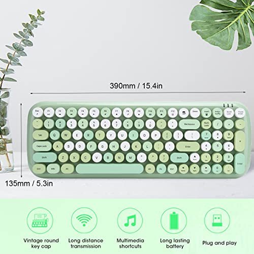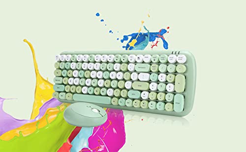 Combinazione Mouse e Tastiera Wireless, Tastiera per Macchina da Scrivere con Tasti Rotondi Colorati con Tastierino Numerico, Tastiera Kawaii Verde USB 2.4G Compatibile con Computer Laptop/PC(Verde)
