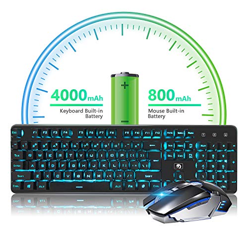 Batteria agli ioni di litio da 4800 mAh, ricarica in qualsiasi momento: tastiera e mouse possono ottenere una ricarica con il cavo USB, fino a un anno di durata della batteria con una sola carica (una carica completa dura circa 5 ore), dire addio alle batterie usa e getta, conveniente ed ecologico