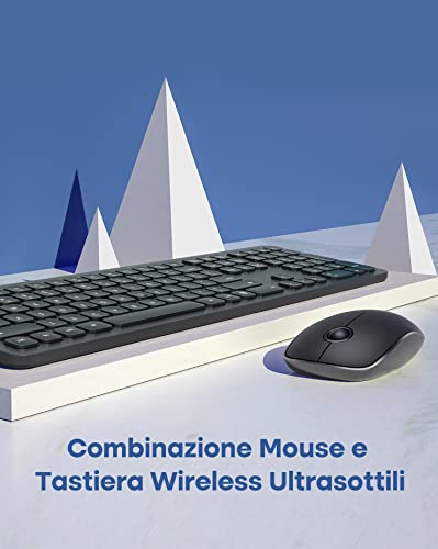 Combo Tastiera e Mouse Wireless per Windows, Set tastiera Wireless e Mouse Muto di Dimensioni Standard Sottili, 2.4G Mouse e Tastiera Wireless, per PC/computer desktop/laptop/Windows/Mac